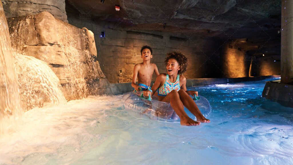 Water Curtains & Waterfalls: Sheets of water that cascade from overhead rock features or bridges. They provide a refreshing splash and enhance the thematic experience.