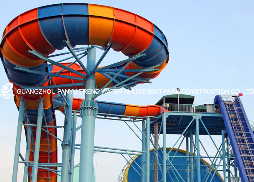 Um escorrega aquático de fibra de vidro é um tipo de passeio de diversão projetado para uso com água, construído principalmente de plástico reforçado com fibra de vidro (FRP).É o padrão da indústria para parques aquáticos modernos e instalações aquáticas em grande escala devido à sua durabilidade, condução suave, e capacidade de ser moldado em formas complexas e emocionantes.